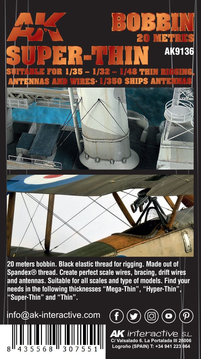AK AK9136 ELASTIC RIGGING BOBBIN: SUPER-THIN (20m)