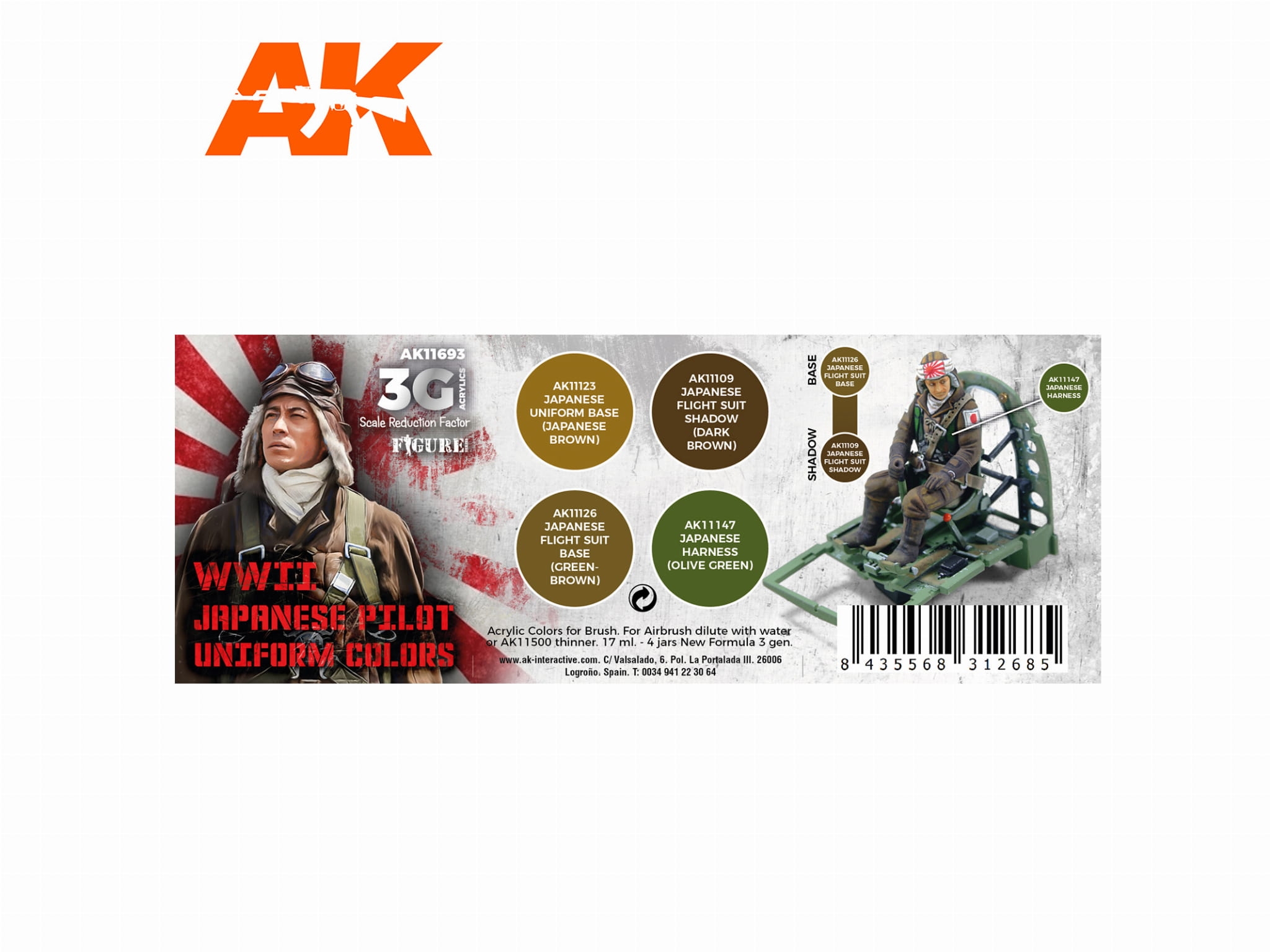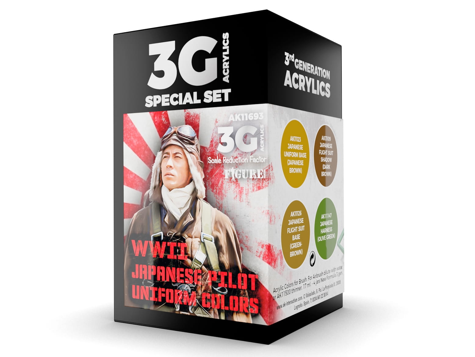 AK Acrylics 3Gen AIRCRAFT SET AK11693 WWII JAPAN UNIFORM COLORS AIR 3G (4x17ml)