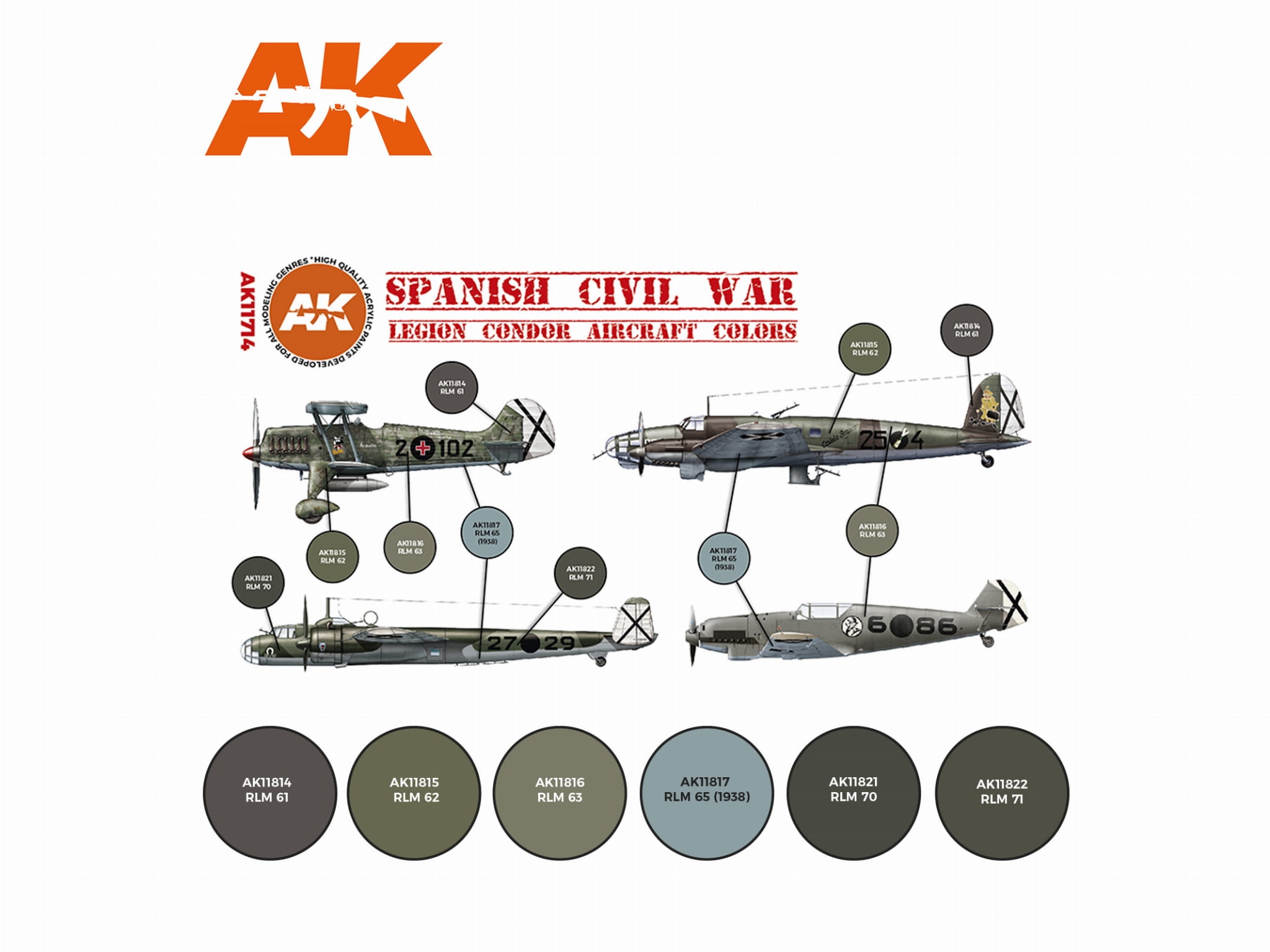 AK Acrylics 3Gen AIRCRAFT SET AK11714 Spanish Civil War. Legion Condor Aircraft SET 3G (6x17ml)