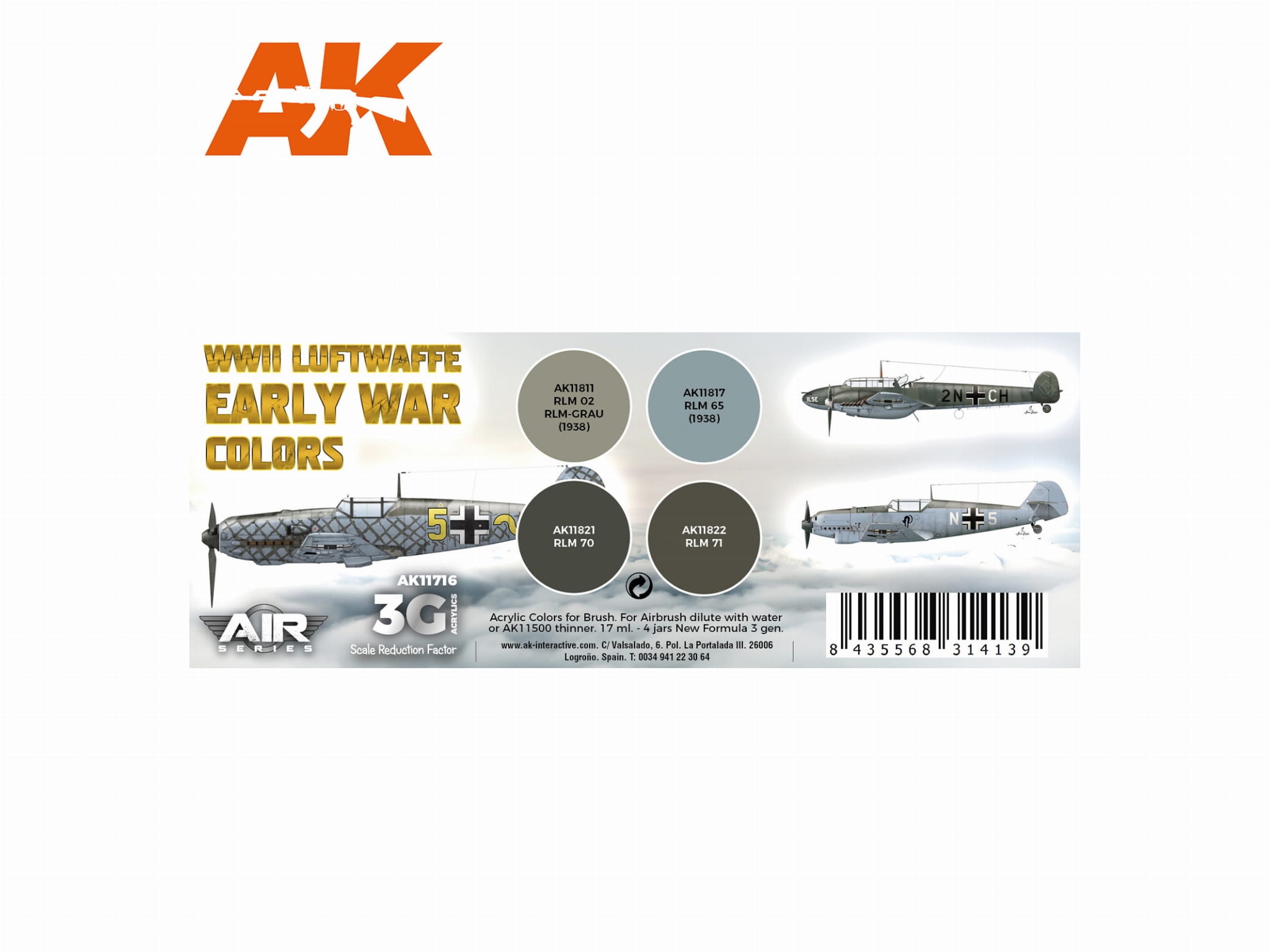 AK Acrylics 3Gen AIRCRAFT SET AK11716 WWII Luftwaffe Early War Colors SET 3G (4x17ml)