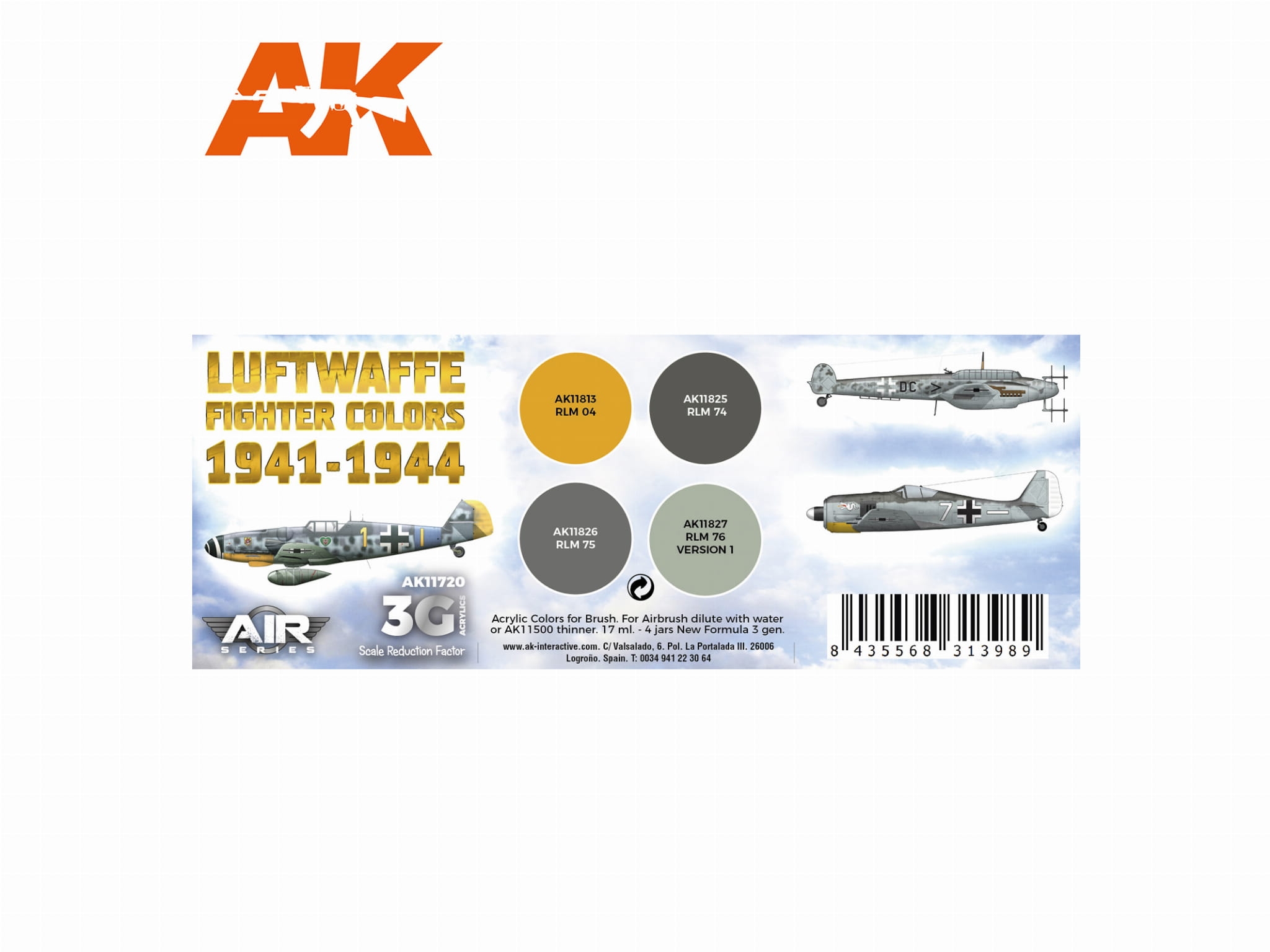 AK Acrylics 3Gen AIRCRAFT SET AK11720 Luftwaffe Fighter Colors 1941-1944 SET 3G (4x17ml)
