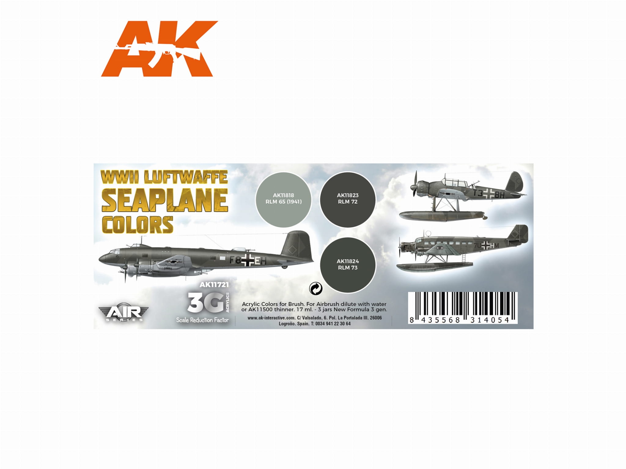 AK Acrylics 3Gen AIRCRAFT SET AK11721 WWII Luftwaffe Seaplane Colors SET 3G (3x17ml)