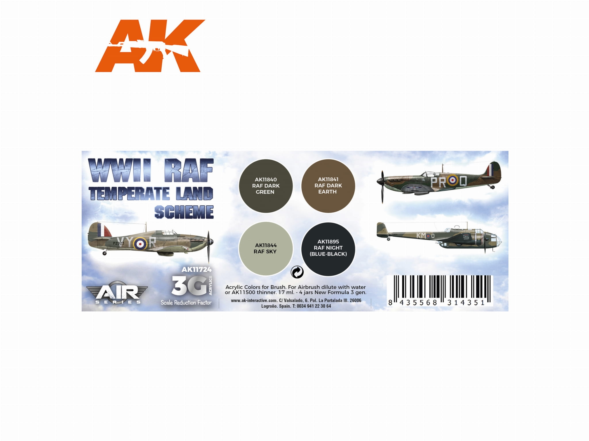 AK Acrylics 3Gen AIRCRAFT SET AK11724 WWII RAF Temperate Land Scheme SET 3G (4x17ml)