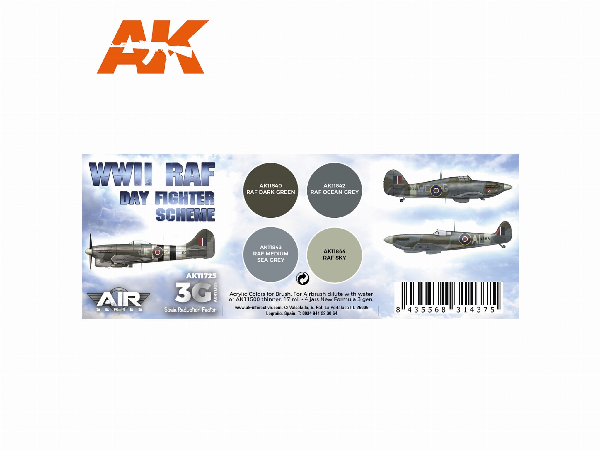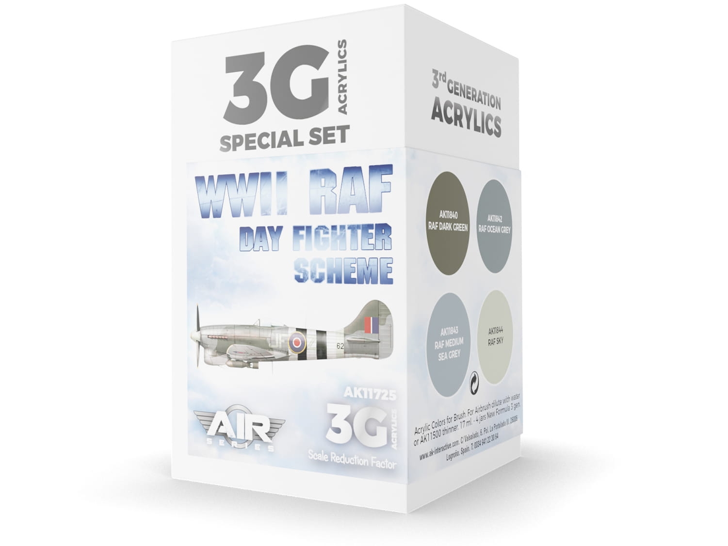 AK Acrylics 3Gen AIRCRAFT SET AK11725 WWII RAF Day Fighter Scheme SET 3G (4x17ml)