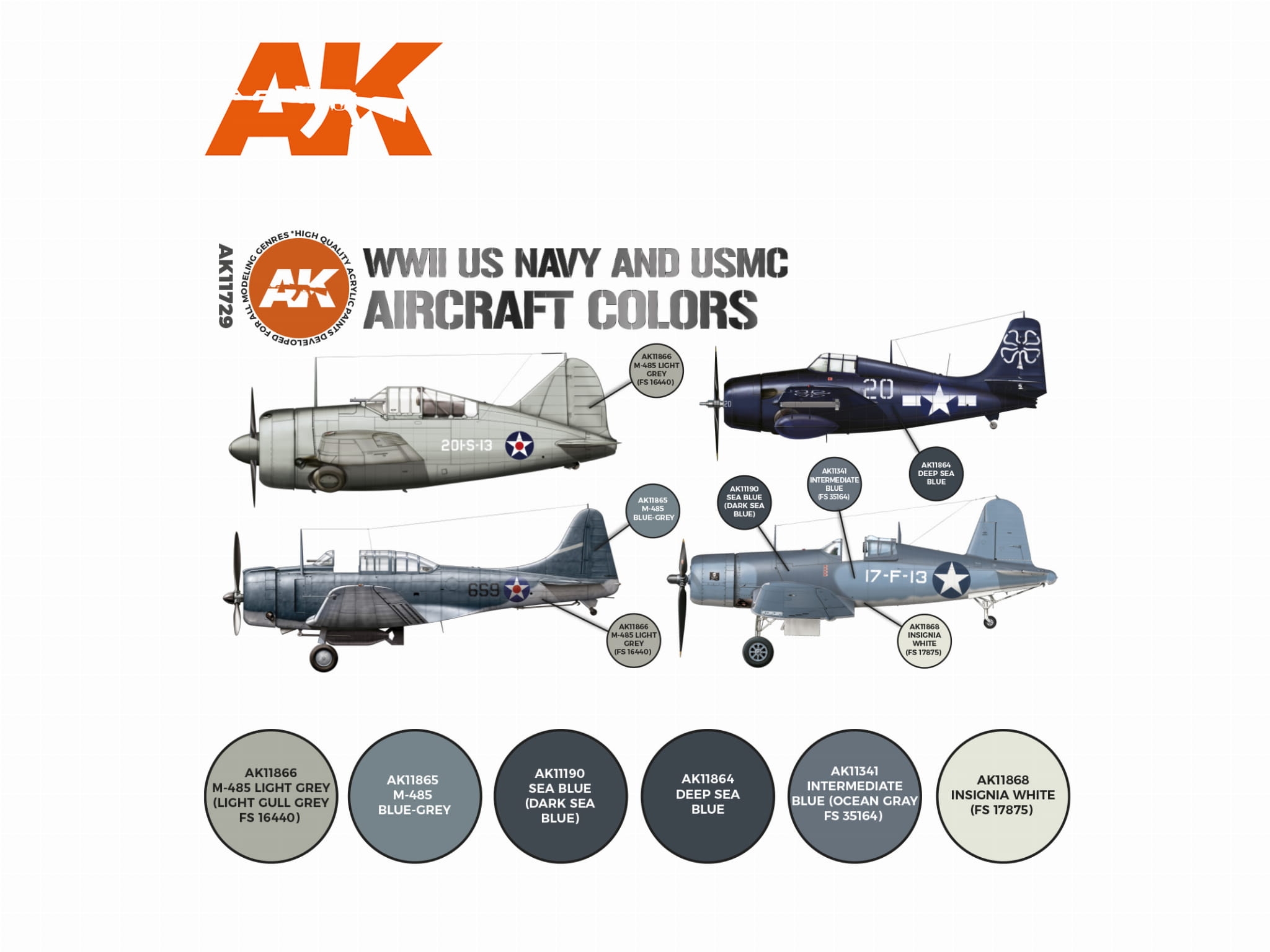 AK Acrylics 3Gen AIRCRAFT SET AK11729 WWII US Navy & USMC Aircraft Colors SET 3G (6x17ml)