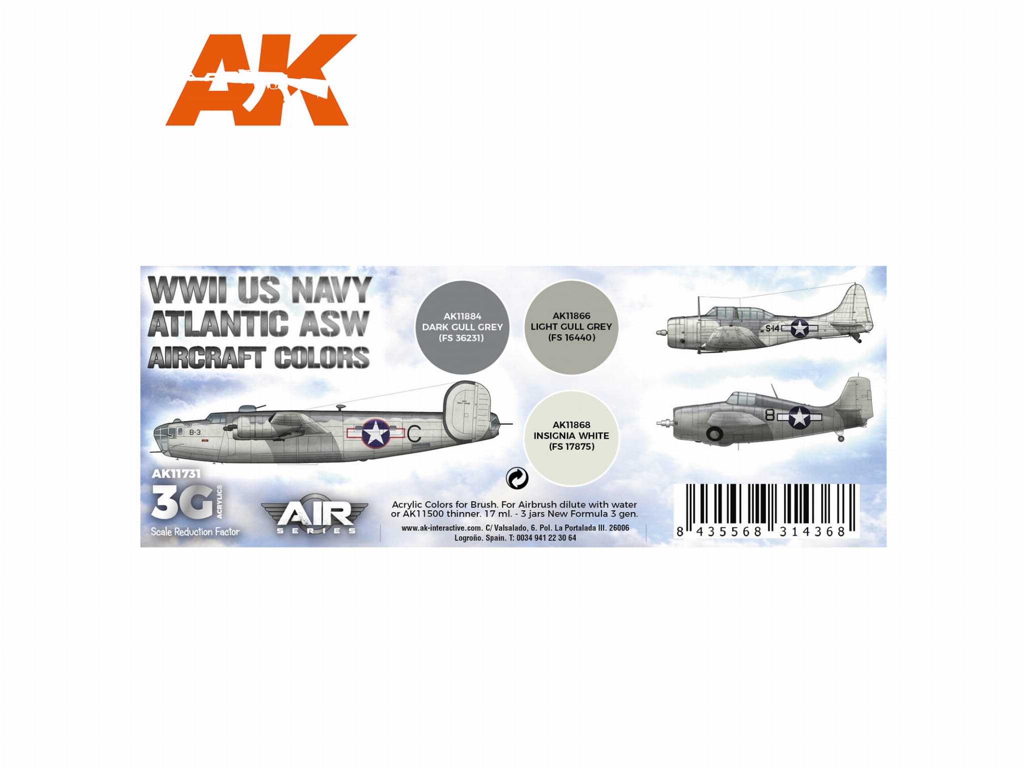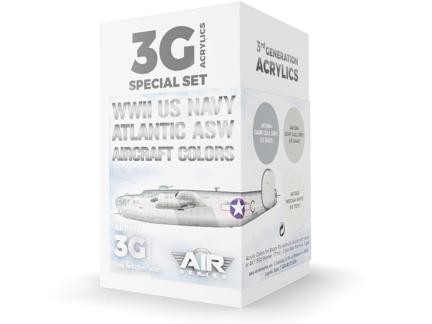 AK Acrylics 3Gen AIRCRAFT SET AK11731 WWII US Navy ASW Aircraft Colors SET 3G (3x17ml)