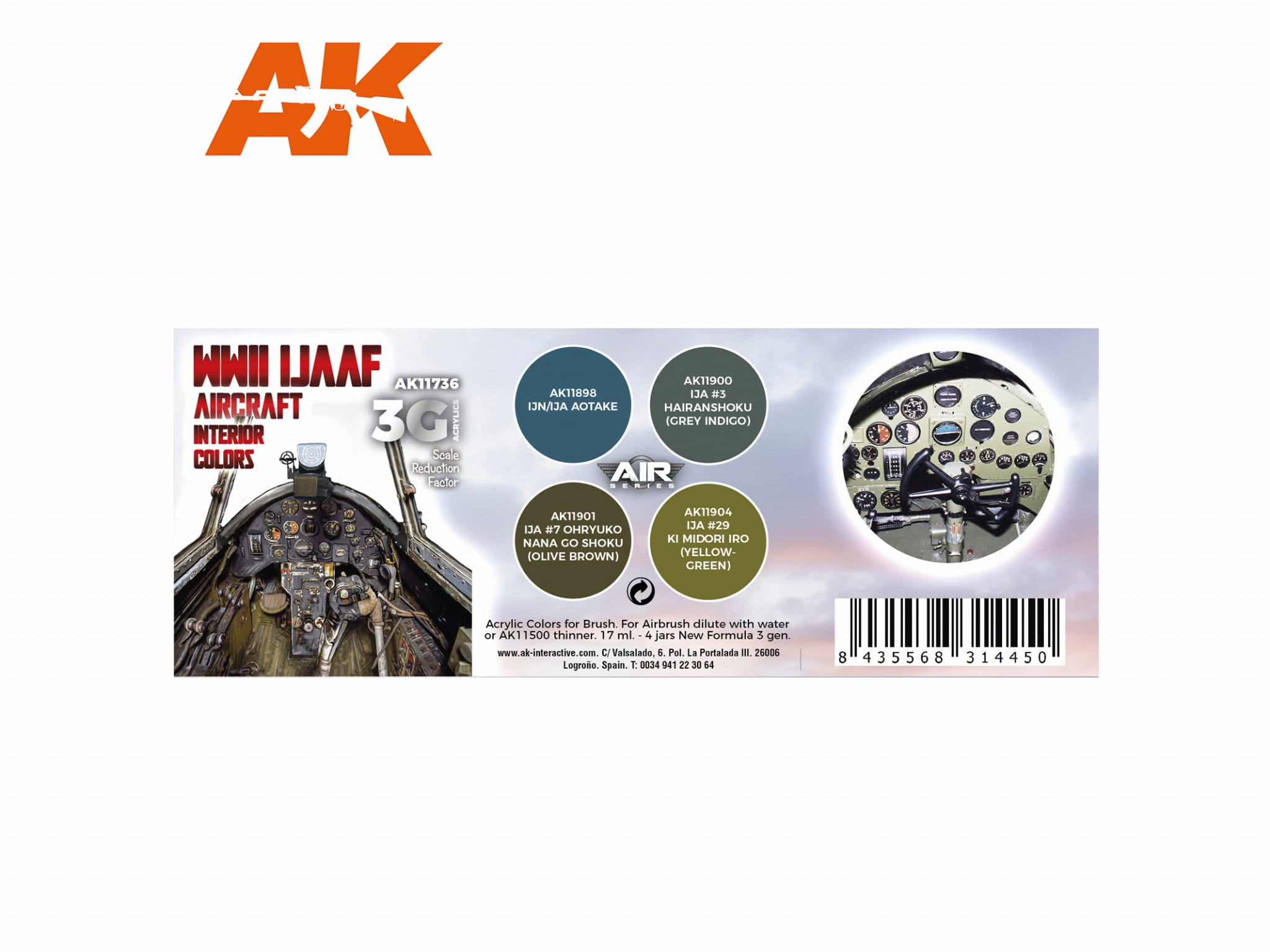 AK Acrylics 3Gen AIRCRAFT SET AK11736 WWII IJAAF Aircraft Interior Colors SET 3G (4x17ml)