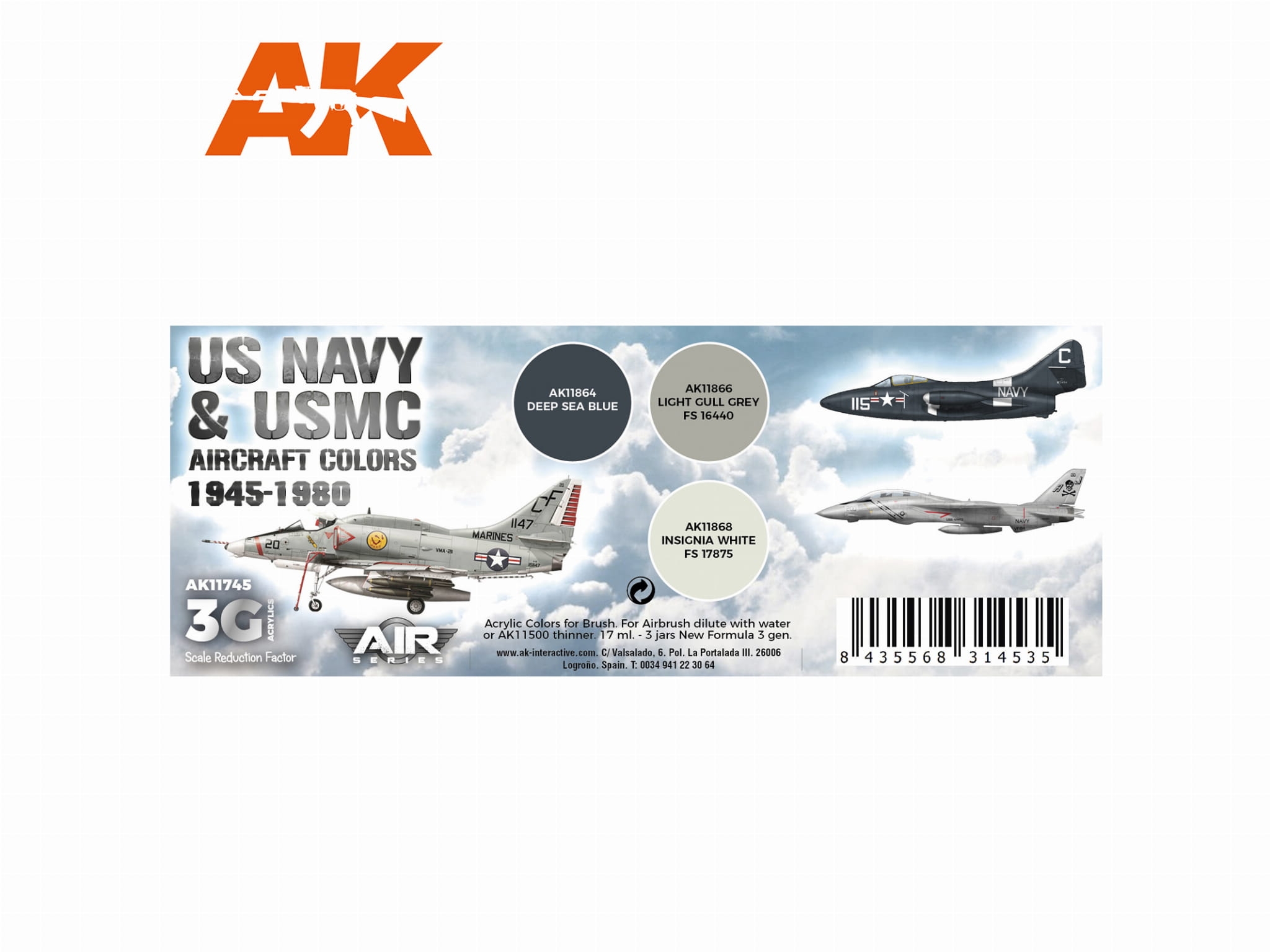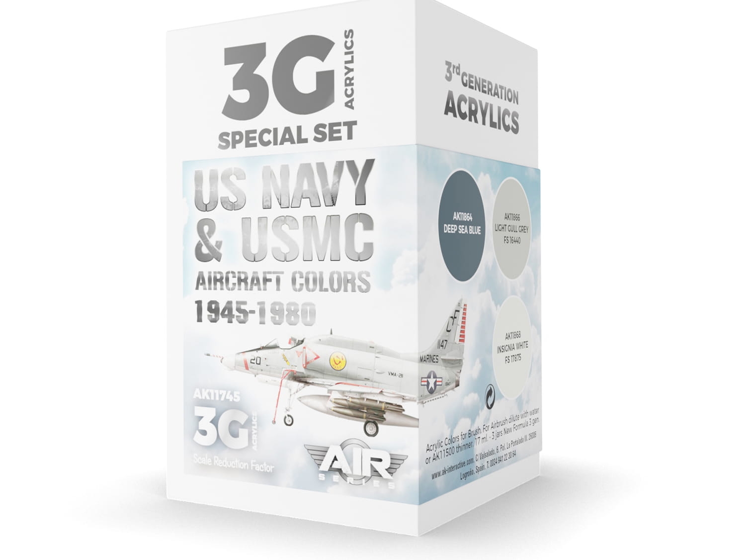 AK Acrylics 3Gen AIRCRAFT SET AK11745 US Navy & USMC Aircraft Colors 1945-1980 SET 3G (3x17ml)