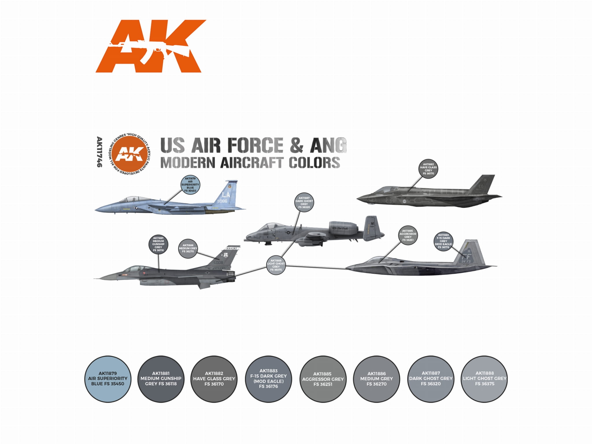 AK Acrylics 3Gen AIRCRAFT SET AK11746 US Air Force & ANG Modern Aircraft Colors SET 3G (8x17ml)