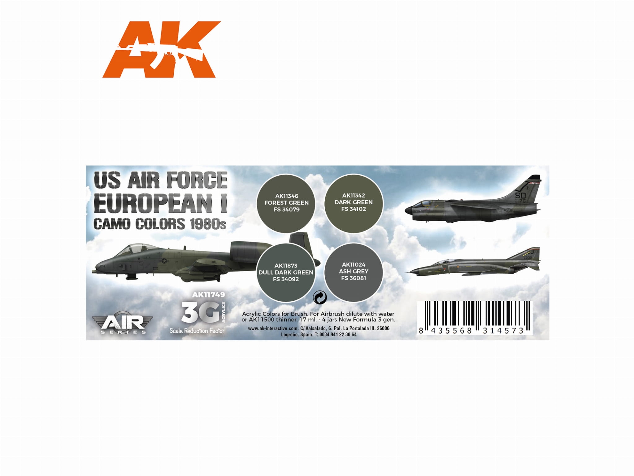 AK Acrylics 3Gen AIRCRAFT SET AK11749 US Air Force European I Camo Colors 1980s SET 3G (4x17ml)