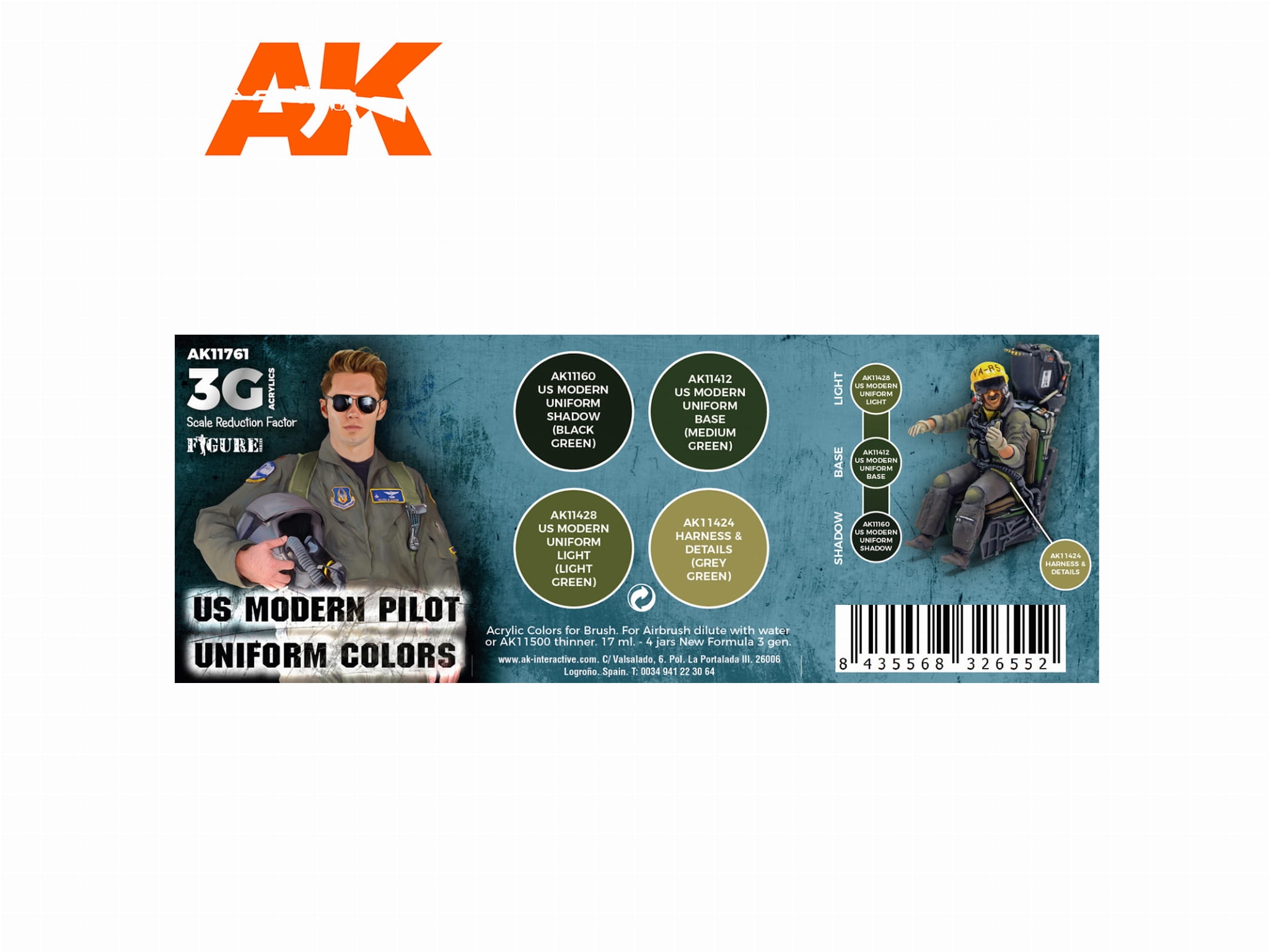 AK Acrylics 3Gen AIRCRAFT SET AK11761 US MODERN PILOT UNIFORM COLORS 3G (4x17ml)