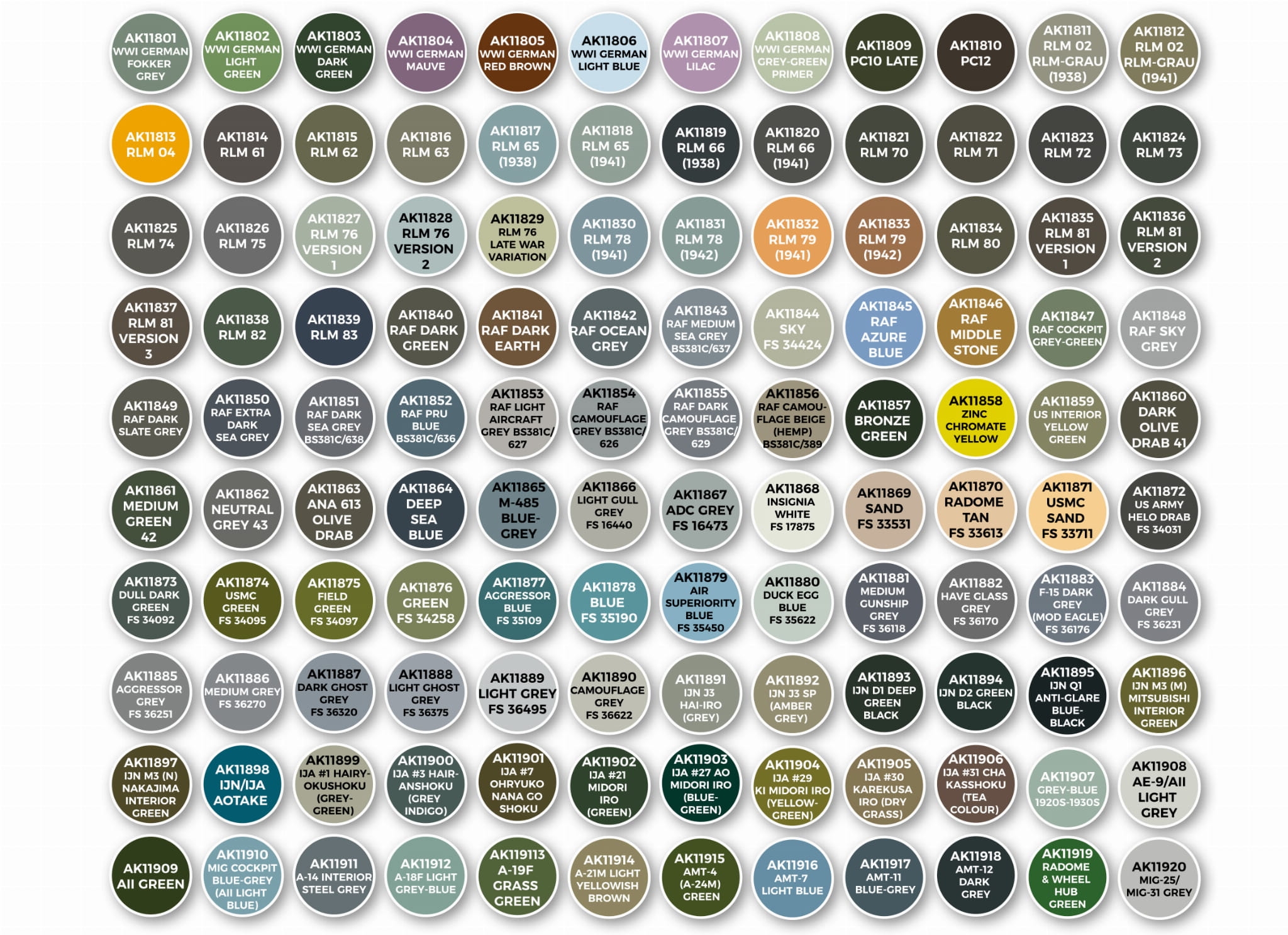 AK Acrylics 3Gen AK11706 BRIEFCASE: BEST OF 120 COLORS for AIRCRAFT (120x17ml)
