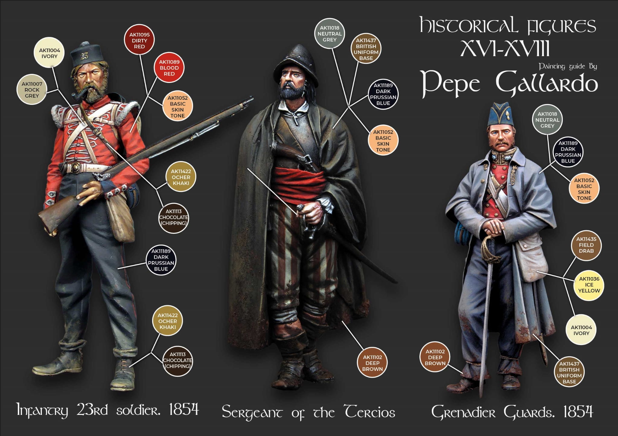 AK Acrylics 3Gen AK11762 HYSTORICAL FIGURES S. XVI-XVIII BY PEPE GALLARDO (18x17ml)