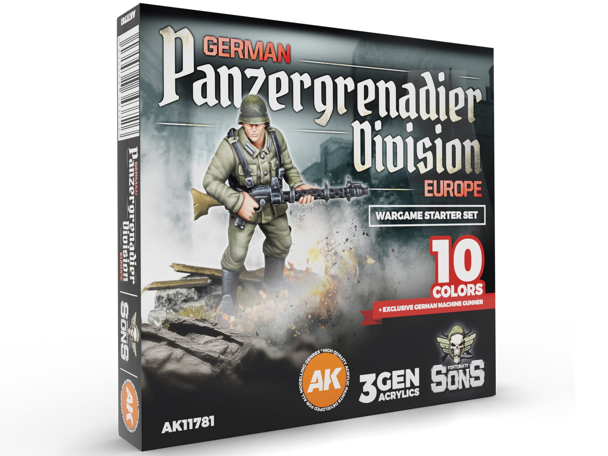 AK Acrylics 3Gen AK11781 German Panzerhrenadier Division Europe - Wargame Set (10x17ml) + Figure