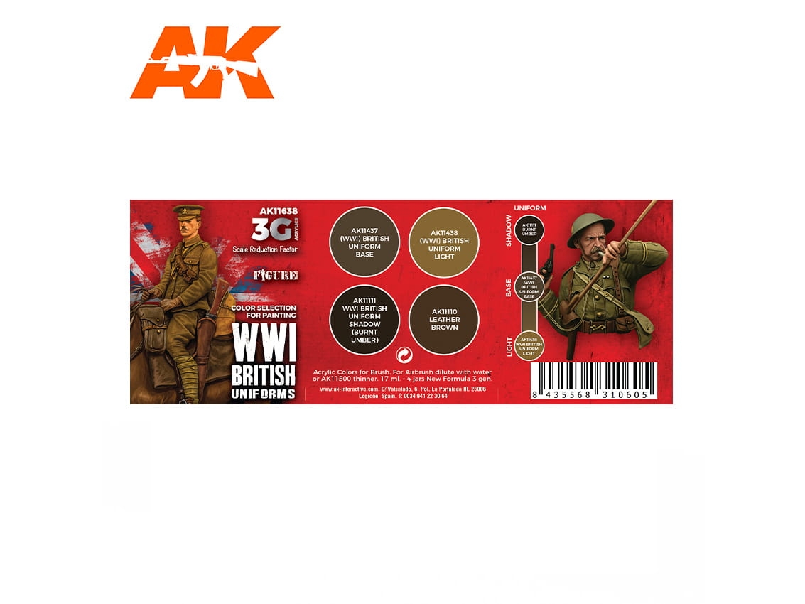 AK Acrylics 3Gen FIGURE SET AK11638 WWI BRITISH UNIFORMS 3G (4x17ml)