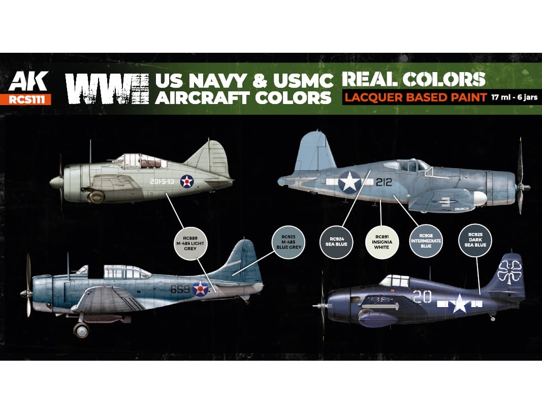 AK REAL COLORS SET RCS111 WWII US Navy & USMC Aircraft Colors (6x17ml)