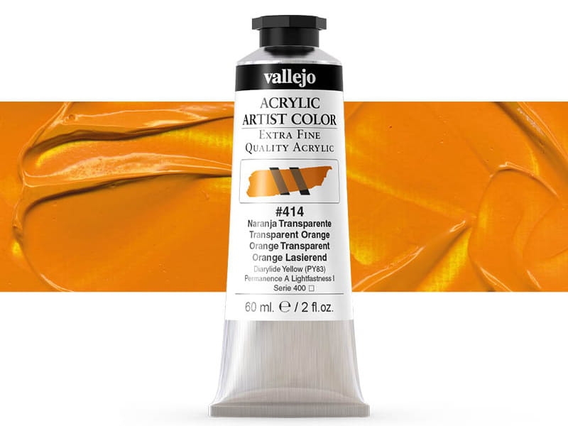 Barva Vallejo Acrylic Artist Color 16414 Transparent Orange (60ml)