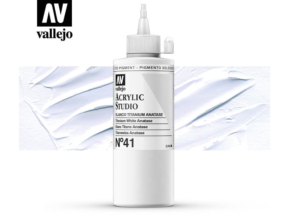 Barvy Vallejo Artist Studio jsou akrylové profesionální barvy ve větším balení přímo určené pro umělecká studia výtvarného umění. Barvy mají vysokou viskozitu 15.000-20.000 cPs a velmi kvalitní pigmenty. Firma Vallejo byla první ze dvou výrobců v Evropě, která vyráběla akrylové barvy pro umělce, především v řadě Acrylic Artist Color od roku 1970 v 58ml hliníkových tubách. V roce 1980 skupina umělců z Fine Arts University in Barcelona kontaktovala firmu Vallejo s poptávkou barev ve větším balení a tak vznikla tato řada Acrylic Artist Studio. Akrylic Artist Studio jsou barvy permanentní, odolné vůči UV záření a neobsahují plnidla jakéhokoli druhu. Jsou složeny pouze z nejlepších pigmentů a 100% pryskyřice. Finální vzhled je saténový s neporovnatelnou čistotou a chromatickou kvalitou. Každá etiketa balení nese označení trvalosti (permanency), kryvosti (opacity) a mezinárodní indexové číslo barvy. Všechny barvy mají certifikaci ASTM D-4236. V průběhu let byly začleněny nové odstíny, nové pryskyřice a nové pigmenty. Aktuální nabídka Acrylic Studio se skládá z 60 barev, vyrobených tak, aby splňovaly nejvyšší požadavky na kvalitu, ochranu životního prostředí a současně byly cenově dostupné. Sortiment zahrnuje základní nátěr Gesso (kategorie Auxiliaries) a Polimer Emulsion (22027), což je stejná 100% akrylová pryskyřice používaná v barvách, která může být použita pro směsi, glazury i jako finální lak. Akryl Studio je kompatibilní s Acrylic Artist Color, Liquid Acrylic a všemi ostatními akrylovými výtvarnými produkty. Podrobné informace o médiích, lacích a texturách najdete v brožuře a v kategorii Auxiliaries. Štětce se čistí vodou a mýdlem, ale nejlépe pomocí Brush Restorer (28890).