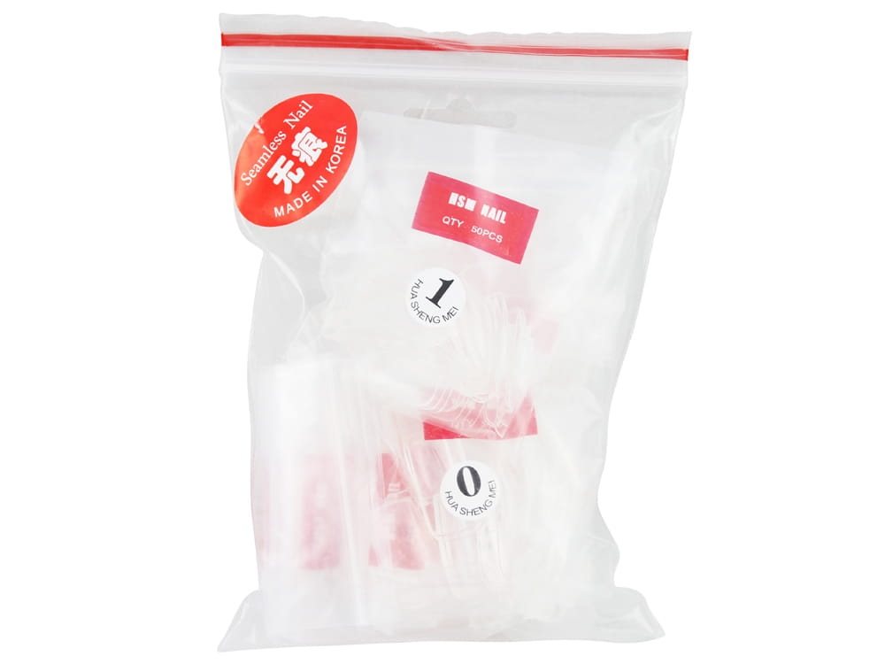 Úmělé nehty, čiré, 500 kusů v pytlíčkách po 50ti kusech a 10ti velikostech.