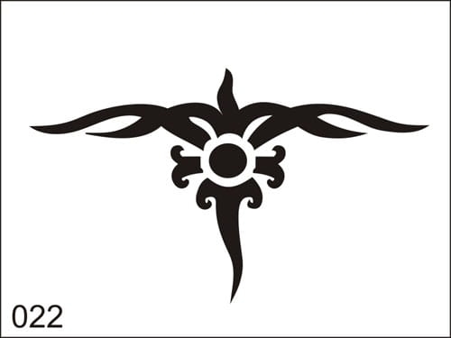Vyobrazený vzor airbrush tetovací šablony je umístěn do obdélníku o rozměrech 6,5 x 8,5 cm. Tetovací šablona je samolepící a nelze ji vícekrát použít!