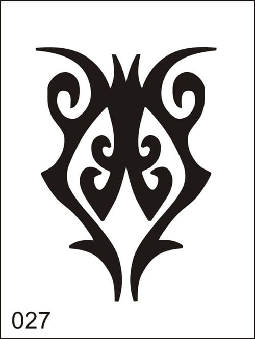 Vyobrazený vzor airbrush tetovací šablony je umístěn do obdélníku o rozměrech 6,5 x 8,5 cm. Tetovací šablona je samolepící a nelze ji vícekrát použít!